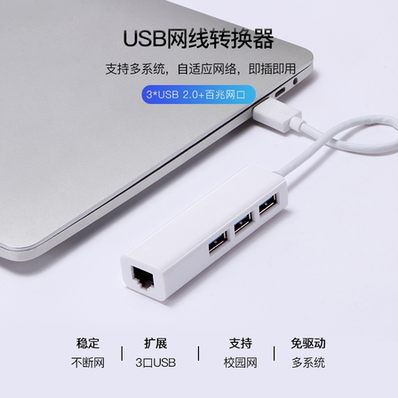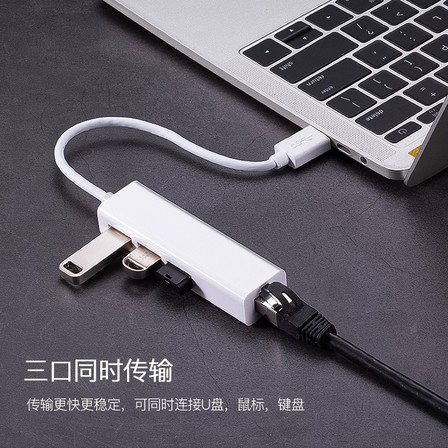 全新设备 全新 OFCCOM USB网线转换接口 扩展坞 分线器hub 延长线网卡转网口 USB接口 2.0百兆 陶瓷白